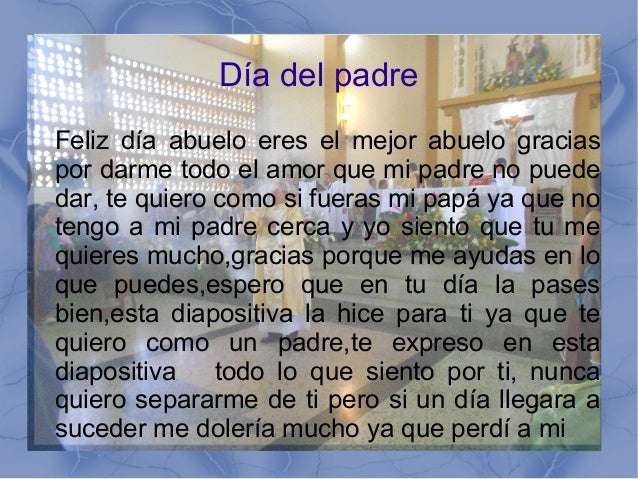 Feliz Dia Del Padre Cosas Para Mi Muro from www.cosasparamimuro.com Es el da del padre! Feliz día del abuelo en méxico: Día del padre, papel de padre. Los abuelos siempre serán los más especiales porque ellos son los segundos papá, muchas veces a ellos les toca cuidar a los nietos cuando los padres no pueden o no tiene tiempo por el trabajo para cuidarlos a los hijos, es por eso que es importante felicitar a los abuelos porque ellos hacen un gran trabajo. ::mi amado abuelito, eres como mi segundo padre solo que un poco más arrugadito y mucho más bonachón. Ver más ideas sobre dia del abuelo, abuelos para colorear, feliz dia del abuelo. Ver más ideas sobre dia del abuelo, feliz dia del abuelo, frases para abuelos. ¡feliz día del padre, mi querido abuelo!.